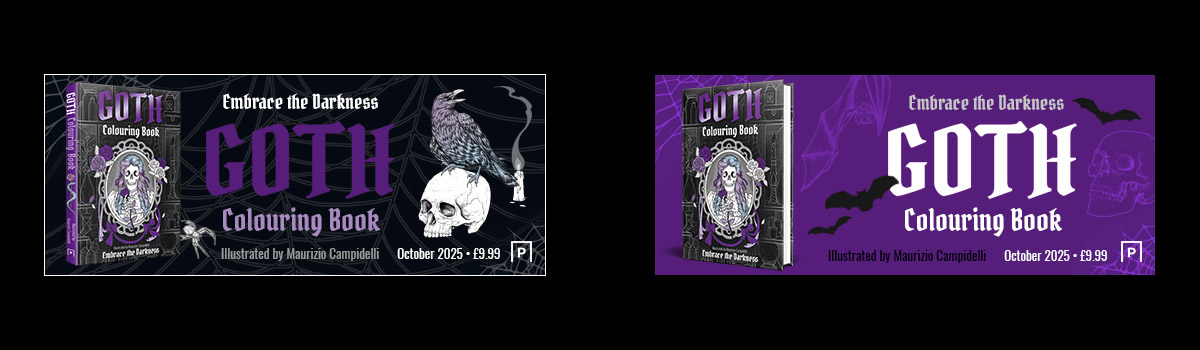 We loved designing this colouring book with stunning illustrations by Maurizio Campidelli. We combined and coloured some of his illustrations to create the cover and it was fantastic to see the final book printed and finished off with a gorgeous purple foil. We also created illustrated ‘gothic’ quotes for the internals to compliment the images. We also created efooter for the publishers to promote the book.
